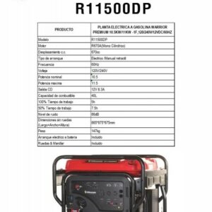 PLANTA ELECTRICA A GASOLINA WARRIOR PREMIUM 2.2KW/2.5KW -1F,120/240V/12VDC/60HZ