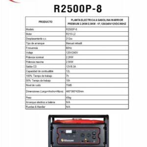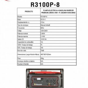 Planta Eléctrica Gasolina Warrior 6 KW – 110V/220V FG6500E, generador portátil con potencia de 6 KW (6.000 Vatios). Ideal para uso eventual o continuo (4 hrs) en zonas donde es irregular o nula la corriente eléctrica, su portabilidad facilita la alimentación para cualquier equipo eléctrico que cumpla con los consumos de vatios requeridos.